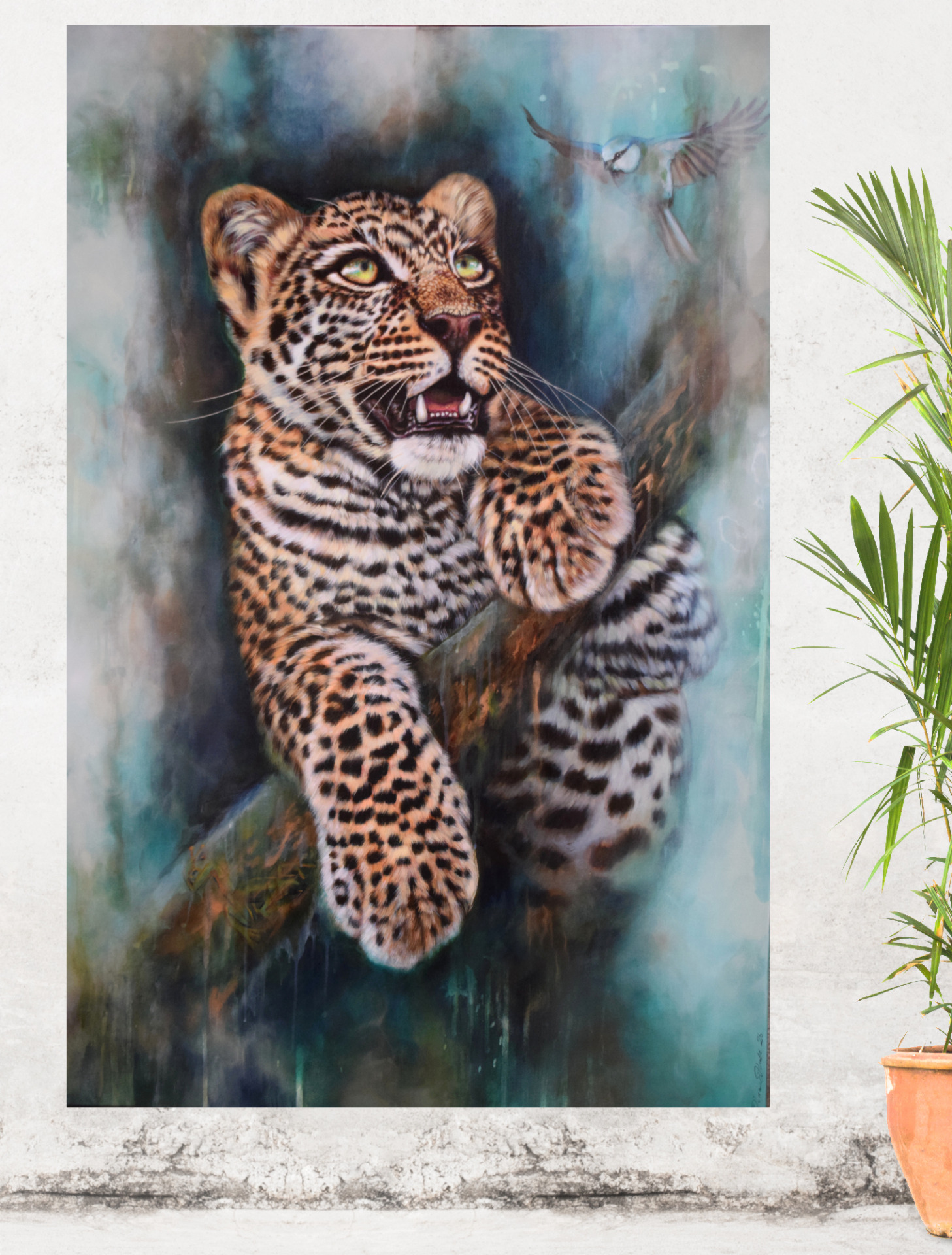 Dream Moment - Ung leopard som udforsker og lever i nuet. Gå på opdagelse i værket & find små elementer som leoparden.